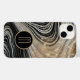 Here's a very attractive phone case that features a faux black, white, and gold swirled agate background that forms an interesting abstract pattern. At the lower centre is a gold lined black circle with your monogram in matching gold. At the top is a subtle, sparkly gold star shine overlay.