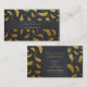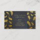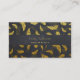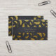 Elegant and simple / minimalist business card template. A pretty pattern with a black background and fancy gold feathers floating downward.