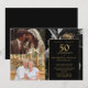 Black And Gold Floral 50th Anniversary 2 Photo Invitation