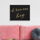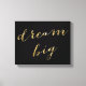 Gold foil Dream Big wrapped canvas printed on black background. Dimensions of the wrapped canvas are 14 inches by 11 inches (horizontal). You can get smaller (10 inches by 8 inches) or larger (60 inches by 40 inches) canvas too or any other custom dimensions.