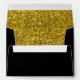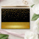 A Black colour envelope with gold stripe badge and gold confetti on top and gold metal glitter surface inside the cover gives perfect black and gold envelope.