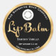 A lip balm sticker featuring a gold foil and black background with space for your logo, business name, scent, and product weight.