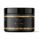 A waterproof label for cosmetics and/or soap products with a black background and faux gold border. Customise it with your business and product information. This label measures 8.25 inches by 1.75 inches (209 mm by 44 mm) and is suitable for jars with a diameter of 2.6 inches (66 mm) or more and a label height area of at least 2 inches (50mm). Most 8 oz (240 ml) and 16 oz (480 ml) jars fit this description, but check the jar specifications to be sure. This label makes a great choice for packaging beauty products that require larger labels like sugar scrubs, body butters, and thick lotions and creams.