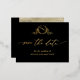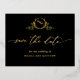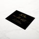Elegant black and real gold foil Wedding save the date with delicate monogram on the front. Font in black background color and monogram and all text in real gold foil. Back in a golden faux foil texture background and text in black. Modern hand written calligraphy details in both front and back. Practical and elegant design. Please note, black on the back is in matte and muted tone as this postcard's back does not come in a glossy finish as the front. Coordinating invitations available. Part of our "Black and Gold Monogram Wedding Collection" with a variety of coordinating products available. Visit the entire collection at: https://www.zazzle.com/collections/black_and_gold_monogram_wedding_collection-119092477004367833