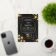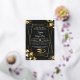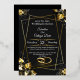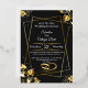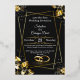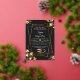 Make a dramatic statement with this truly glamourous wedding invitation. This design features a rich black background contrasted beautifully with luxurious metallic gold floral elements and a bold geometric frame. The luxurious look is completed by two elegant interlocking wedding rings at the bottom. The strong contrast and deep colours make this a perfect choice for formal, evening, or black-tie events. All text and details are fully editable, including the names, date, and RSVP information. Look through the collection for matching stationery to complete your opulent wedding suite.