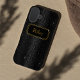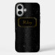 A luxury and elegant phone case with name in vintage gold frame. Pattern is a sparkling black art deco pattern. (product has no real sparkle or glitter). Add your name and create a personal elegant case.