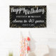 Personalised adult birthday party banner featuring a stylish black background that can be changed to any colour, a scattering of party gold confetti glitter, and a cheers to (age) years celebration template that is easy to personalise.
