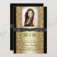 Pretty black and gold glitter graduation announcement. This beautiful black and gold graduation announcement is easily customised with your photo and event details in the font style and colour, and wording of your choice. You can also change the background colour on this elegant black and gold graduation announcement.