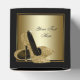 Elegant gold glitter high heel shoe black and gold birthday party favour boxes. You can easily customise these black and gold favour boxes by adding text in the font style and colour of your choice.