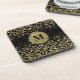 Black and gold leopard print initial beverage coaster. Easily personalized!