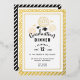 This Black and Gold graduation celebration invitation features a gold foil frame with fireworks and the words "graduation dinner" with graduation caps. All the details are in a coordinating black and gold theme and can be personalised to the needs of your event. On the back the design features graduations caps in black and a faux gold glitter with the words Class of 20XX written on the front. You can add customisation of school name or other organisation.