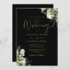 Black And Gold Greenery Floral QR Code Wedding Invitation