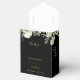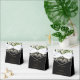 Elegant black and gold floral greenery string lights wedding favour box personalised with your names, monogram initials, wedding date and special message. Designed by Thisisnotme©