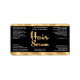 This elegant product label for hair serum bottles features a black background with a faux gold foil border. This label contains space for your product name, business name, product weight, ingredients, instructions, social media, and business address. This label measures 2.375 inches long by 1.25 inches high (60 mm long by 38 mm in height) and is a great choice when you are looking to package essential oils, fragrance oils, beard oils, face serums, hair serums, and other products in standard 1 ounce or 2 ounce glass dropper bottles.