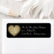 Chic wedding return address labels, done in black, with a gold tone heart, on the left side, with a white one letter monogram. Personalise the white text and monogram, to suit your needs.