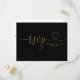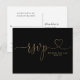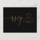 An elegant gold heart script on a black background RSVP card. The reverse features your details and a fun guest song request. Designed by Thisisnotme©