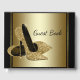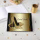 Womans black and gold high heel shoe guest book with a pair of gold glitter high heel shoes on an elegant black and gold background. You can easily customise this beautiful black and gold womans birthday party guest book for your event by simply adding your text in the font style of your choice. This is a printed design with no real glitter.
