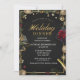 Black and Gold Holiday Dinner Invitation with gold glitter ornaments metallic faux gold