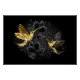Black and gold jewellery hummingbirds on grey background decorated with plants. Jewellery birds. Golden bird. Gold bird.