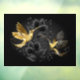Black and gold jewellery hummingbirds on grey background decorated with plants. Jewellery birds. Golden bird. Gold bird.
