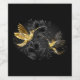 Black and gold jewellery hummingbirds on grey background decorated with plants. Jewellery birds. Golden bird. Gold bird.