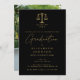 This black and gold elegant law school graduation party invitation can be personalised with your graduation details and a photo on the reverse. Designed by Thisisnotme©
