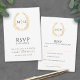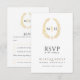 Black and gold leaf oval wreath RSVP wedding Card