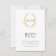 White and gold hand-drawn oval leaf wreath botanical art wedding RSVP. Simple leaf design around your own monogram initials. In simple gold with black text on white. Matching invitations and other matching items and colour options are available. © Original leaf drawing and design by Sarah Trett for www.mylittleedenweddings.com on Zazzle.