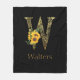 Black and Gold Letter W Sunflowers Fleece Blanket