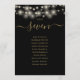 These elegant black and gold double-sided table number seating chart cards featuring pretty string lights are perfect for all celebrations. Designed by Thisisnotme©