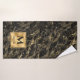 Black and Gold Marble Monogram Elegant Luxury Bath Towel Set
