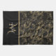 Black and Gold Marble Monogram Elegant Luxury Tea Towel