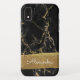 Black and Gold Marble with Gold Foil and Glitter Elegant Monogram Name Phone Case. This Phone Case can be customised to include your first name.