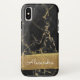 Black and Gold Marble with Gold Foil and Glitter Elegant Monogram Name Phone Case. This Phone Case can be customised to include your first name.