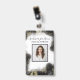 Black And Gold Modern Liquid Watercolor Business ID Badge. Elegant alcohol ink hand lettered style calligraphy script professional design. Perfect for makeup artists, hair stylists, cosmetologists, and more!