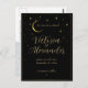 Featuring a gold graphic illustration of a crescent moon surrounded with celestial stars, this celestial theme save the date postcard is perfect for your modern wedding when the stars align. Customise the text on front and back with your own wedding and venue info. Add your own special photo.