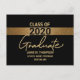 Share your joy and celebrate the Graduate. Customise this postcard for the Class of 2020 Graduate. Congratulations on your child's Graduation. Gold and black print. Use this template to customise your announcement with a special greeting announcement on the back. Make it easy by including your return address on these postcards already for mailing.