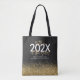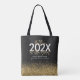 Black and gold modern script glitter graduation tote bag