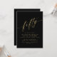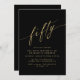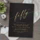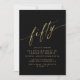 Formal 50th birthday invitations with "fifty" text in a calligraphy script. Faux gold font a black background.