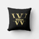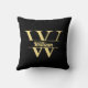 Black and Gold Monogram | Elegant Initial Script Throw Pillow