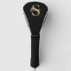 This classic simple black and gold monogram golf head cover is easily personalised for any golf player with name and initial.