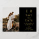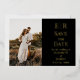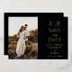 Introduce the essence of sophistication with our exquisite 'Black and Gold Monogram Photo Save the Date Card.' Crafted on real gold foil invitation cards by Zazzle, this card features a captivating layout with a photo on the left and elegantly scripted text on the right, all against a striking black backdrop adorned with shimmering gold typography. The reverse side boasts a sleek black finish, completing the allure of this opulent design.