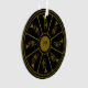 Black and gold motif with trumpets and a monogram ornament