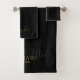 Featuring modern, elegant typography, this chic black-and-gold towel set can be personalised with your name and special date. Designed by Thisisnotme©
