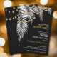 White palm tree fronds with gold light strands on a black background, these are fun birthday party invitations for any age, just change the details. See MATCHING items in our collection.