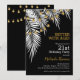 White palm tree fronds with gold light strands on a black background, these are fun birthday party invitations for any age, just change the details. See MATCHING items in our collection.