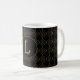Elegant black and gold Moroccan trellis patterned coffee mug that you can customise with your monogram .