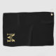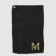 featuring personalised gold monogram in classic serif font style with box of name in the middle of monogram on black background.