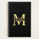 featuring personalised monogram in gold classic serif font style with box of name in the middle of monogram on black background.