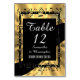 Traditional chic elegant modern sleek masculine black and gold personalised table number with musical notes surround, on black background and swirly ribbon , personalise with your text to the templates for your special occasions or celebrations. Visit the PERSONALIZED _WEDDINGS STORE for matching products. PLEASE NOTE THE golden colour is not metallic.